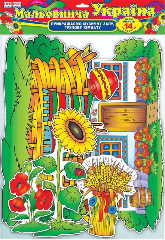 Набір для оформлення дитячого садка або будь-якого іншого кабінета в українському стилі. Складається із 14 окремих деталей великого розміру.