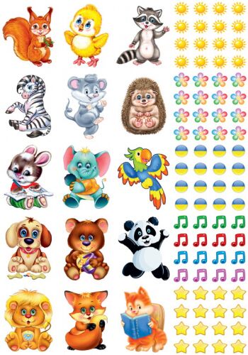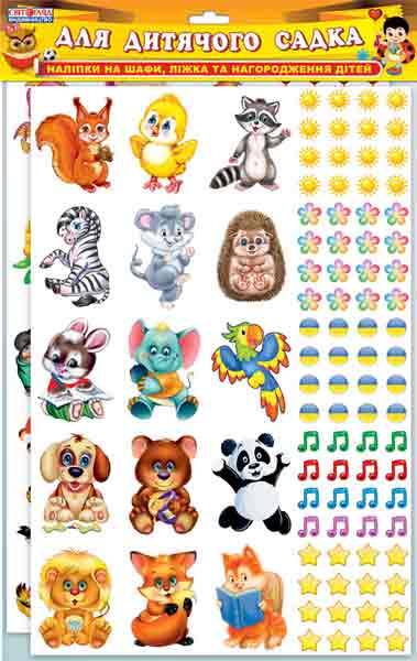 Яркие наклейки помогут приспособится детям к новой обстановке. Каждый ребёнок сможет получить свой рисунок и наклеить его на свой шкафчик, и кроватку . Также в наборе наклейки-оценки.