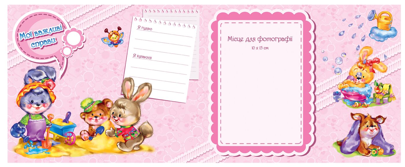 Альбом немовляти стане подарунком для молодих батьків. Він допоможе зберегти найдорожчі, найпрекрасніші спогади про перший рік життя дитини. У цьому альбомі є місце і для коротких нотаток, і для фотографій, і для відбитка маленької долоньки.