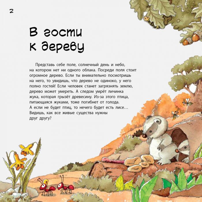 Ты когда-нибудь замечал, как много животных и растений живёт рядом с нами? Цветы, огромные деревья, животные с яркой окраской... Жизнь каждого из них зависит от других живых существ и места обитания. Это значит, что одних животных ты найдешь в пустыне, других — в джунглях, а третьих — в городах и сёлах. Хочешь узнать, в какой части мира живёт каждый из них? Тогда поскорее открывай книгу!