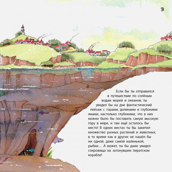 Моря и океаны покрывают такую большую часть нашей планеты, что при взгляде с космического корабля Земля кажется синей. А если ты заглянешь вглубь океанов, то сможешь увидеть горные хребты с пустынями, глубокие расщелины, в которых могут жить только морские чудовища, и полное жизни прибрежное мелководье. Под обложкой этой книги шумит океан. Хочешь взглянуть?