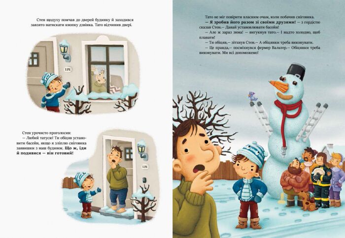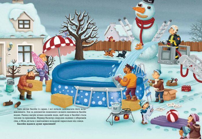 Книга-картинка для читання дітям. Тепла зимова історія про дружбу, взаємодопомогу та виконання обіцянок. Для всіх, хто полюбляє плавати та ліпити сніговиків.