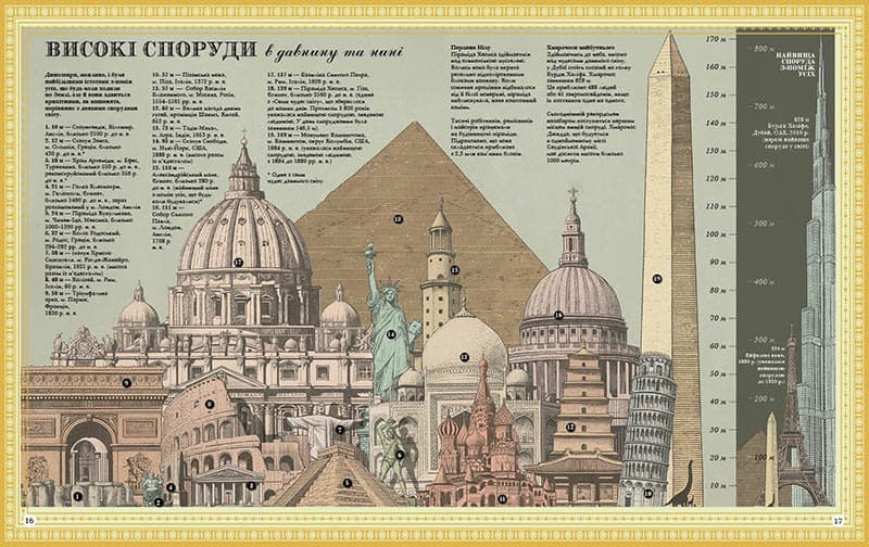 Наскільки великими були динозаври порівняно з єгипетськими пірамідами? Може птах літати швидше за літак? Скільки років Усесвіту? Це лише кілька запитань, на які дасть відповідь ця неймовірна енциклопедія порівнянь, ілюстрована видатним художником Пейджем Цзоу. Видання надруковано за кошти гранту інституційної підтримки.