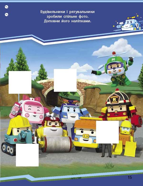 Зустрічайте серію книг з наліпками 'Robocar Poli'! Тут машинки-рятувальники готуються до свята, збирають футбольну команду і доставляють листи. Ти можеш їм допомогти. Для цього читай завдання, підбирай потрібні наліпки і оживляй сторінки з героями містечка Брумс!