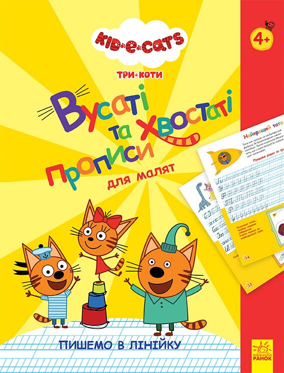 KIDS-E-CAT ТРИ КОТИ ВУСАТІ Й ХВОСТАТІ ПРОПИСИ ДЛЯ МАЛЯТ ПИШЕМО В ЛІНІЙКУ вік 4 РАНОК