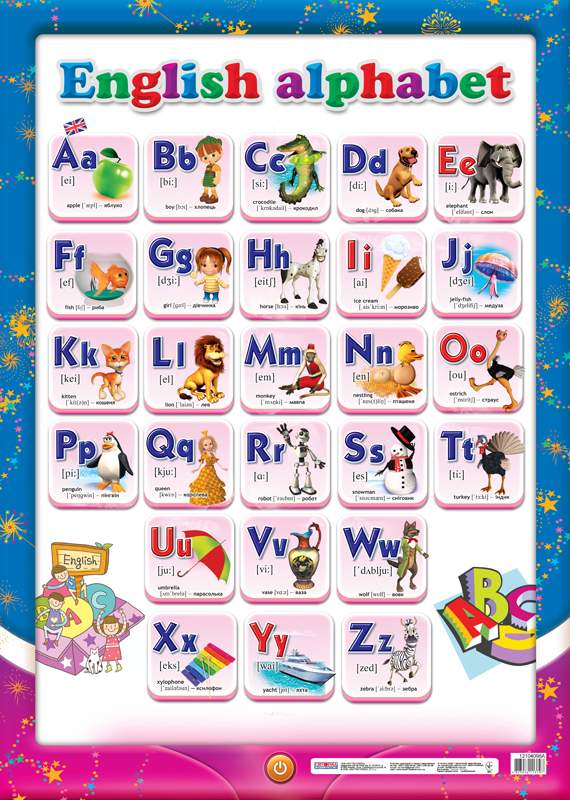 Каждая буква английского алфавита проиллюстрирована красочными рисунками. Азбука представляет собой плакат, который при желании можно разрезать и использовать как раздаточный материал. Пособие предназначено для работы с детьми старшего дошкольного и младшего школьного возраста.