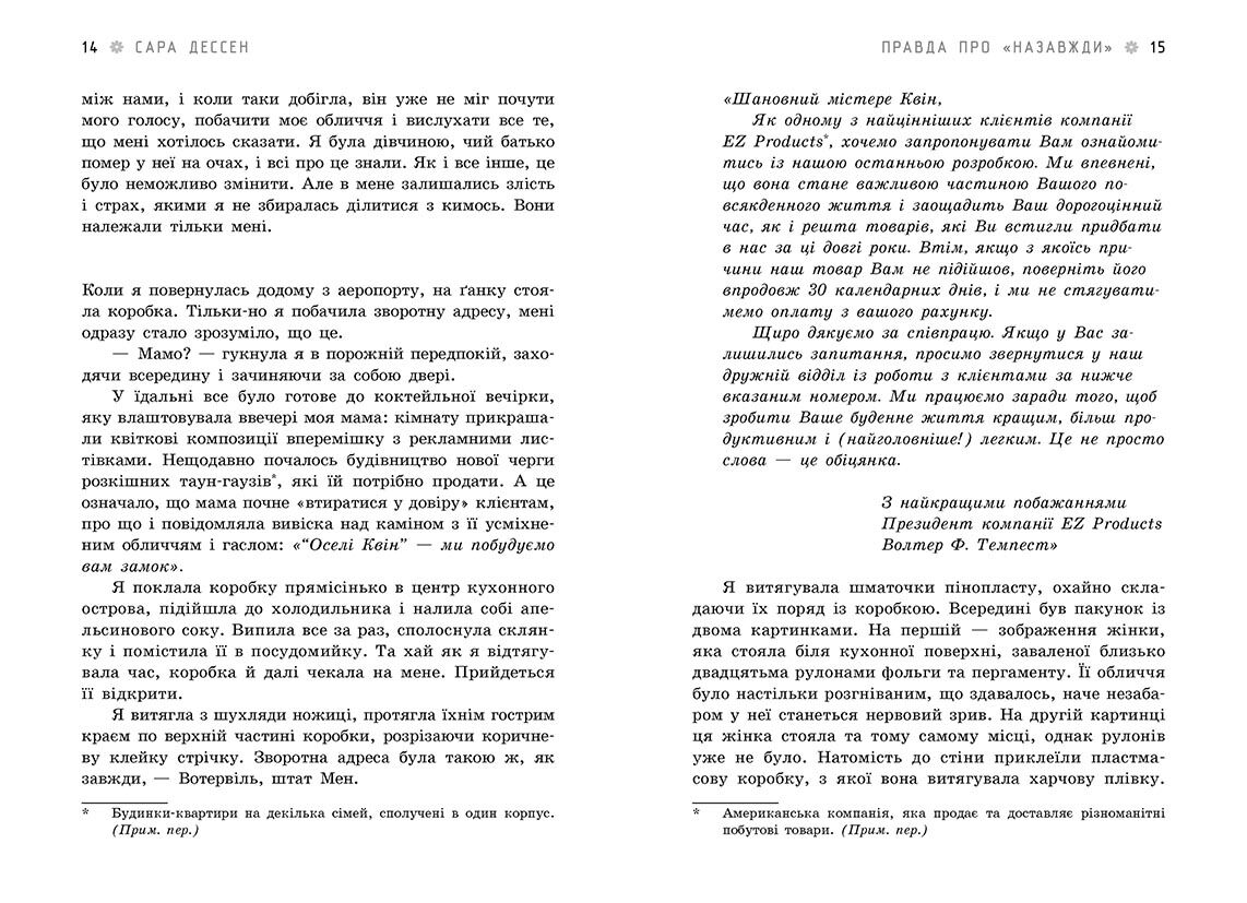 Правда про назавжди Young Adult. Сучасна проза Сара Дессен Ранок. Зовні Мейсі спокійна та цілеспрямована. Усередині ж неї все бушує і розривається: вона мовчки переживає смерть батька і змушена бути ціле літо в розлуці зі своїм ідеальним хлопцем, щоб розібратися, чи мають ці стосунки сенс. Підготовка до іспитів, робота в бібліотеці, прибирання в будинку, йога — і так по колу все літо.