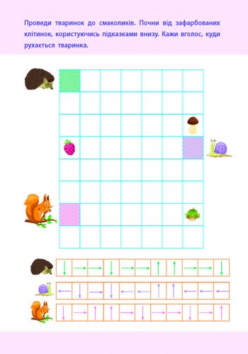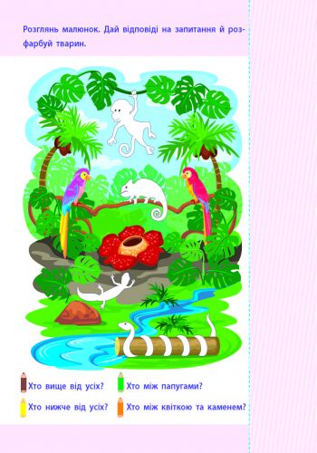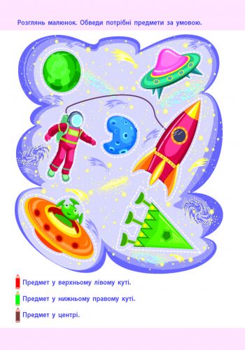 У зошиті викладено матеріал, який допоможе дитині ознайомитися з різними предметами в просторі та вчить знаходити взаємозв'язки між ними. Завдання допомагають розвивати увагу, мислення та логічне мислення дитини. Виконуючи ці завдання, малюки навчаться рахувати, порівнювати, класифікувати предмети за розміром, кольором та формою.