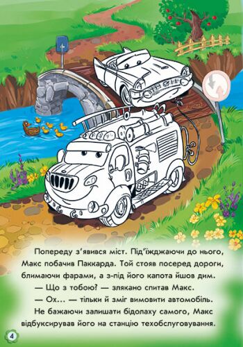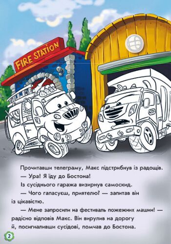 Пригоди пожежного автомобіля Наклей і розфарбуй Ранок. Серія книжок-розмальовок з наліпками для тих, хто захоплюється машинками. У кожній книжці є історія про машину, й лист з наліпками.
