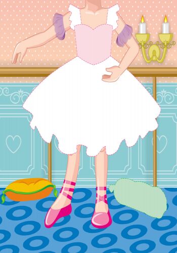 Книга із вирубкою у вигляді ляльки для дівчаток. Обкладинка кожної книги має оригінальну вирубку у вигляді дівчинки-ляльки. А сторінки книги - це її вбрання. За допомогою кольорових олівців, фломастерів та доданих до книги наліпок дитина зможе розмалювати наряди для ляльки. Зразки суконь дані поруч на сторінці.