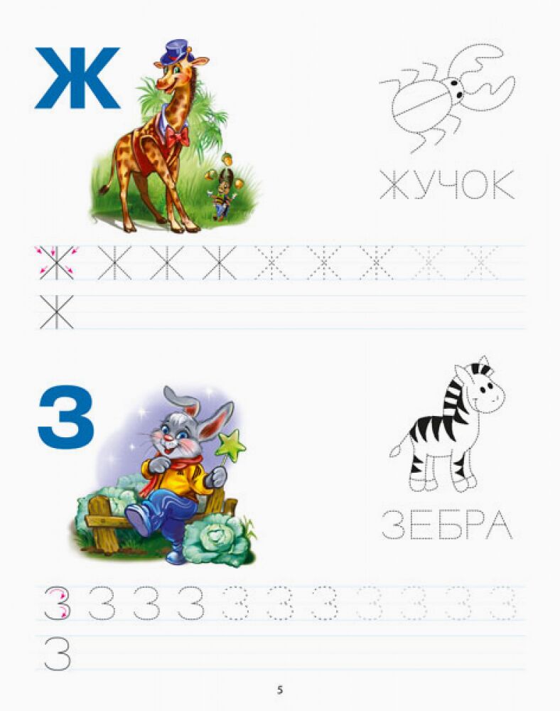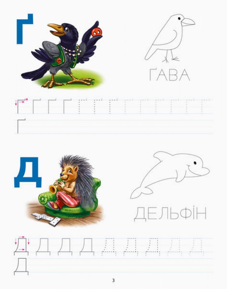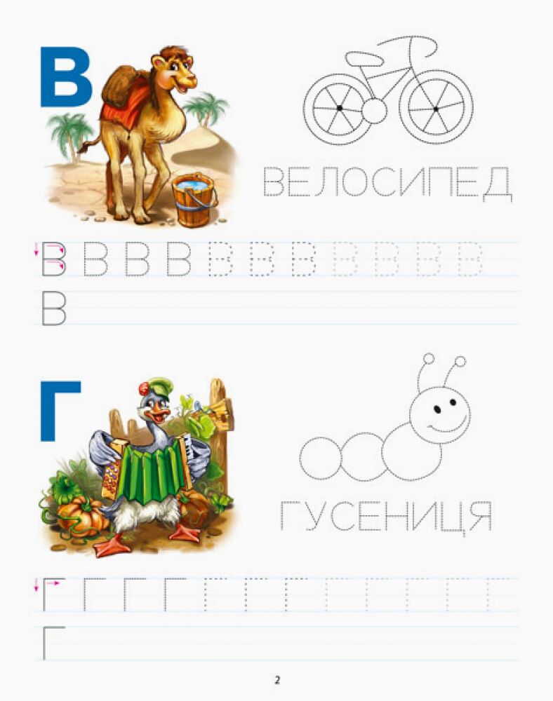 Книга ПРОПИСИ. АБЕТКА. Вчимося писати містить не тільки вправи на написання букв, але й інтересні завдання на їх використання у словах та реченнях, що сприяє розвитку мовленнєвих здібностей дитини.