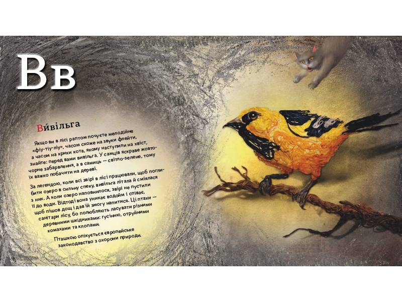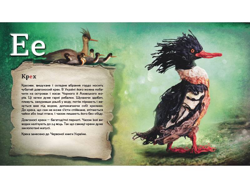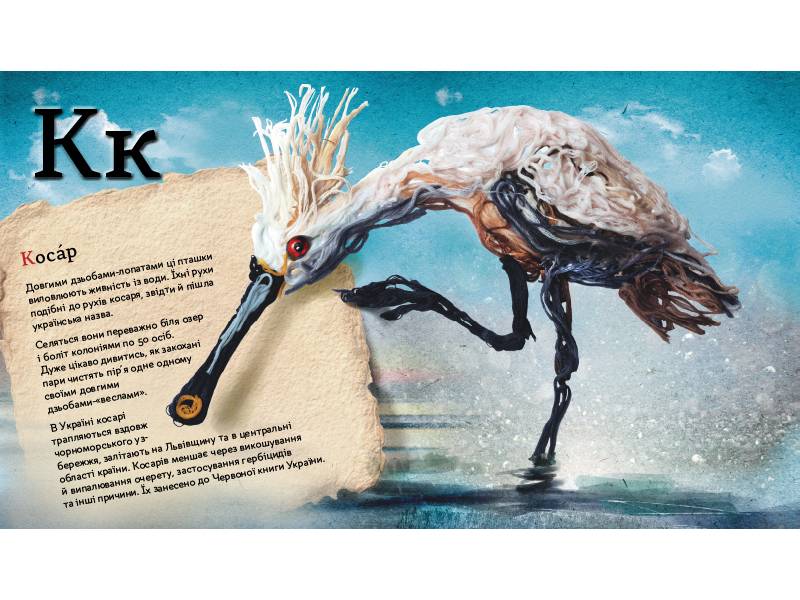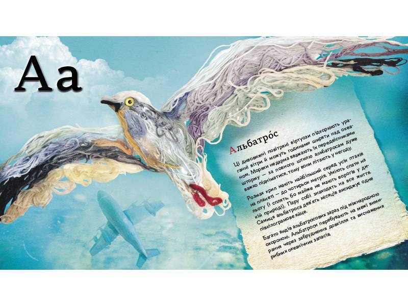 В Україні можна зустріти 436 видів птахів. Багато з них – рідкісні, занесені до Червоної книги України, захищені європейським законодавством з охорони природи. Художниця Ірена Панаріна обрала 33 пташки, які проживають чи залітають в Україну, та створила унікальну пташину абетку. Книжка ілюстрована в оригінальній авторській техніці ниткових зображень. Це видання — не лише для тих, хто опановує грамоту, а й для всіх, хто любить і береже природу.