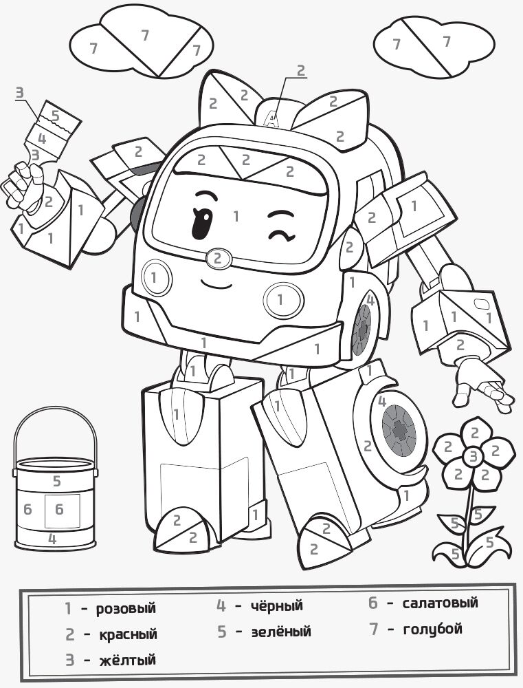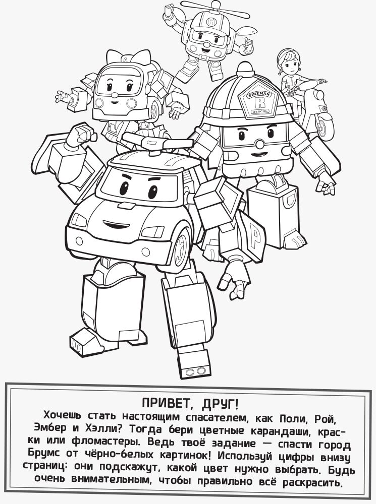 Книжки серії - це розмальовки із героями мультфільму "Robocar Poli". Розфарбовуючи за цифрами, дитина вивчить кольори та цифри, а також чудово проведе час у компанії з Полі, Ембер, Хеллі та іншими рятувальниками.