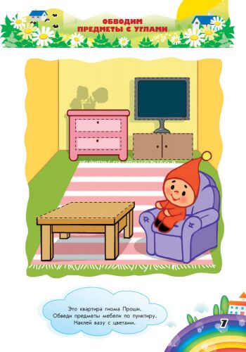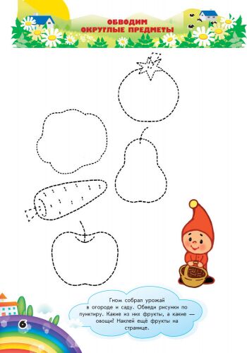 Видання допоможе дитині навчитися охайно проводити лінії, розфарбовувати малюнки, штрихувати, обводити предмети, малювати. Завдання подані в ігровій формі. На кожній сторінці зошита малюка зустрічає гном Проша — провідний персонаж усіх зошитів серії. Зошит містить дві сторінки наклейок. Дитина не лише відповідатиме на запитання й малюватиме, а й наклеюватиме яскраві картинки. Видання сприяє розвитку дрібної моторики рук, логічного мислення, активного словникового запасу. Зошит призначений для дітей віком від трьох років.