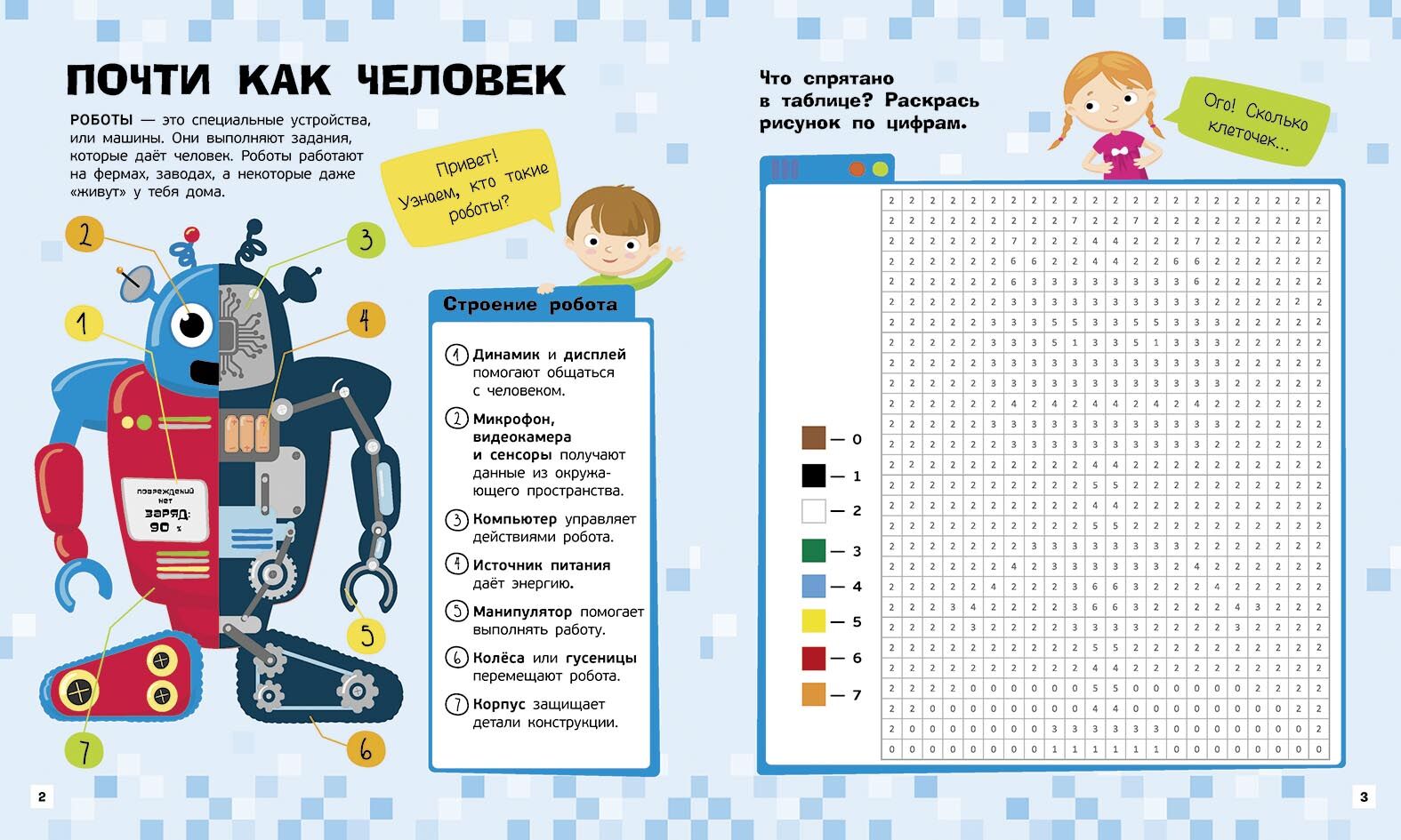 Роботы Познавательные активити Ранок. Эти книги мега-познавательно-технологические: здесь смартфоны, компьютеры, р?боты и интернет рассказывают о том, как они работают. В книгах объединены факты, активити и наклейки. Выполняя задания, дети смогут закреплять свои знания и весело проводить время.