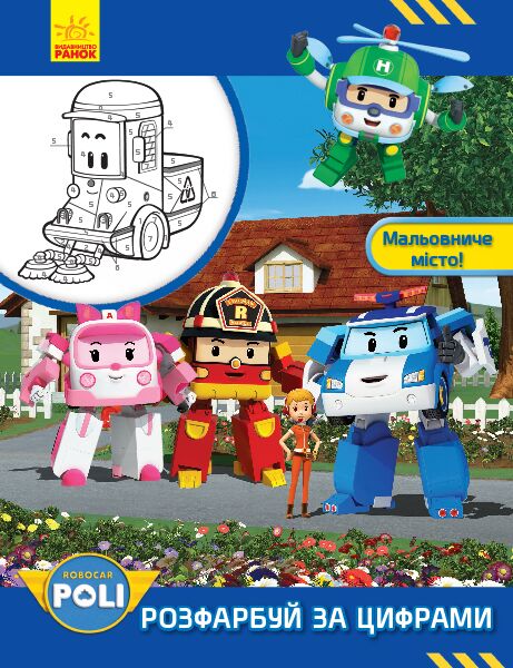 Розфарбуй за цифрами Мальовниче місто! Robocar Poli Ранок. Книжки серії - це розмальовки за цифрами із героями мультфільму "Robocar Poli". Розфарбовуючи за цифрами, дитина вивчить цифри та кольори, а також чудово проведе час у компанії з Полі, Ембер, Хеллі та іншими рятувальниками.