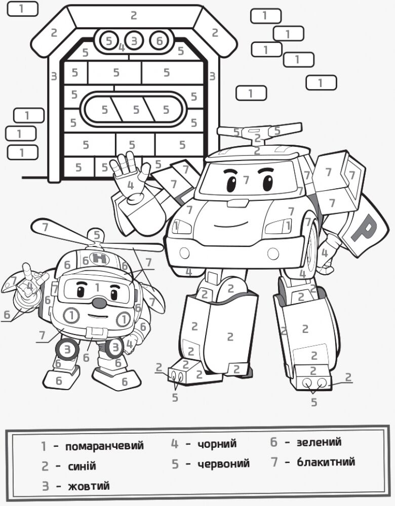 Розфарбуй за цифрами Мальовниче місто! Robocar Poli Ранок