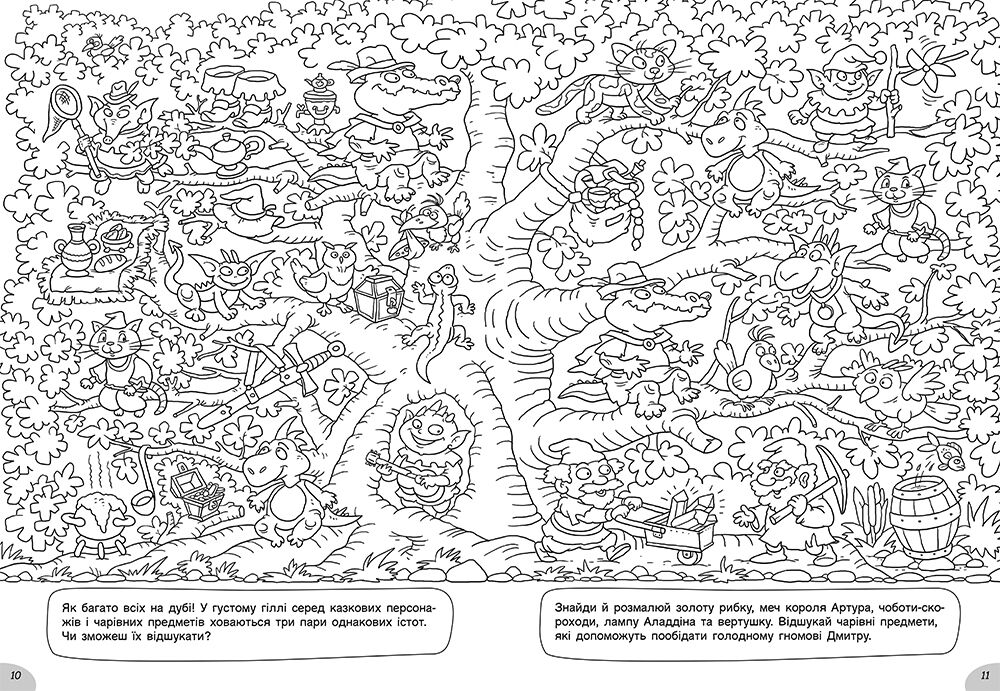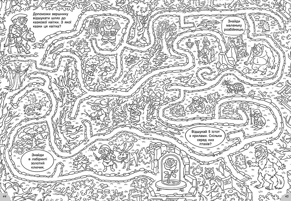 Розмальовки-хованки у казковій країні Сидоренко А. Ранок. Ця розмальовка-хованка надовго захопить юного дослідника і шукача. Адже кожна сторінка — це цілий світ, повний подій, героїв, пригод. Тут можна виконувати завдання, шукати загублених персонажів, проходити заплутані лабіринти і виявляти фантазію. Наповни цей дивовижний світ барвами!