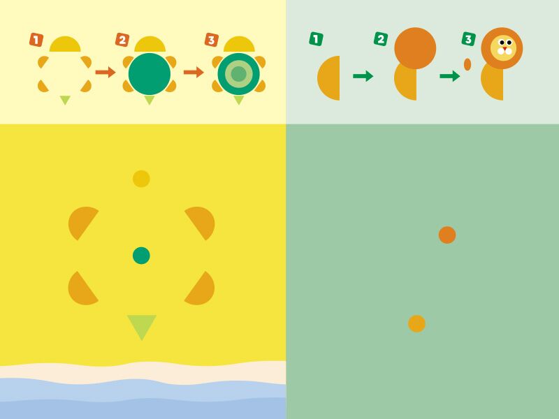 Круг може перетворитися на сонечко. Трикутники з кружечками складаються у пташку, а квадрати і трикутники - песика. Що ще можна скласти з різнокольорових фігур? 16 ігор фантазій і перетворень. Вивчаємо фігури, розвиваємо уяву, просторове мислення, креативність та дрібну моторику. Ігри та їх складність підібрані відповідно до віку та рівня вмінь. Зошити з позначкою віку 2-3-4 - початковий рівень складності: малюнки з кружечками та овалами.