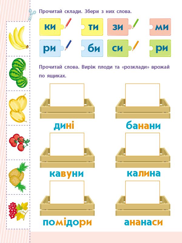 У зошиті представлені ігрові завдання для ознайомлення зі складами та формування перших слів, що допомагають дітям розуміти будову мови та розвивати свої навички читання. Кожна сторінка зошита наповнена яскравими ілюстраціями та цікавими завданнями, що стимулюють активне навчання та розвиток дитини.