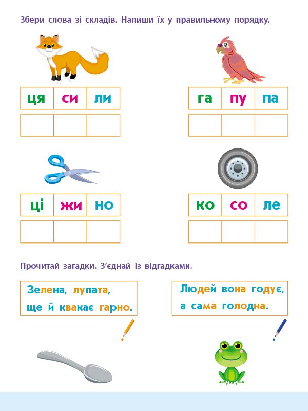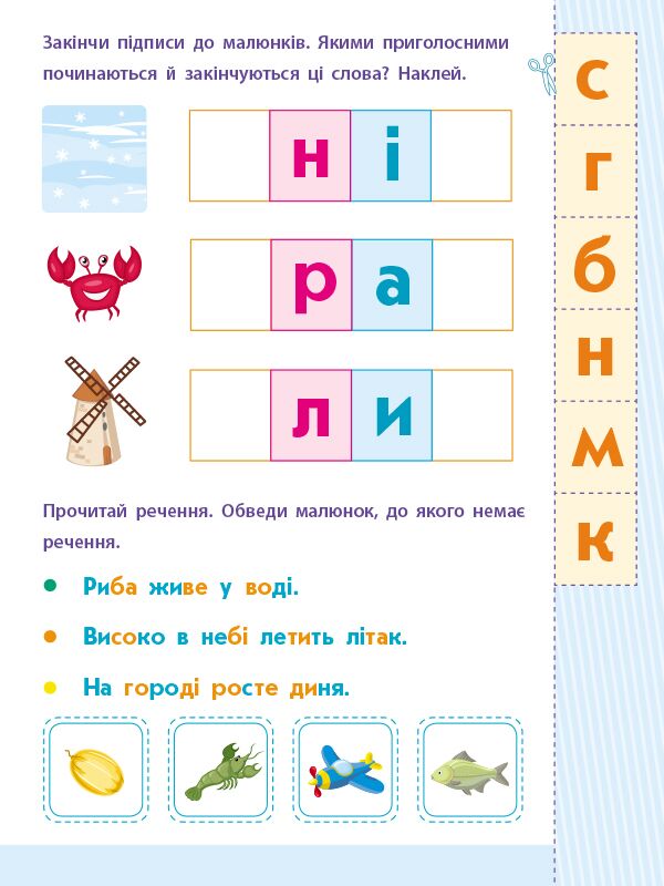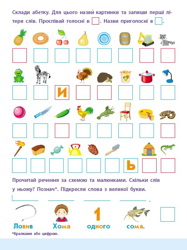 У зошиті представлені ігрові завдання для ознайомлення зі словами та реченнями, які допомагають дітям розуміти будову мови та збагачувати свій словниковий запас. Кожна сторінка зошита наповнена яскравими ілюстраціями та цікавими завданнями, що стимулюють активне навчання та розвиток дитини.