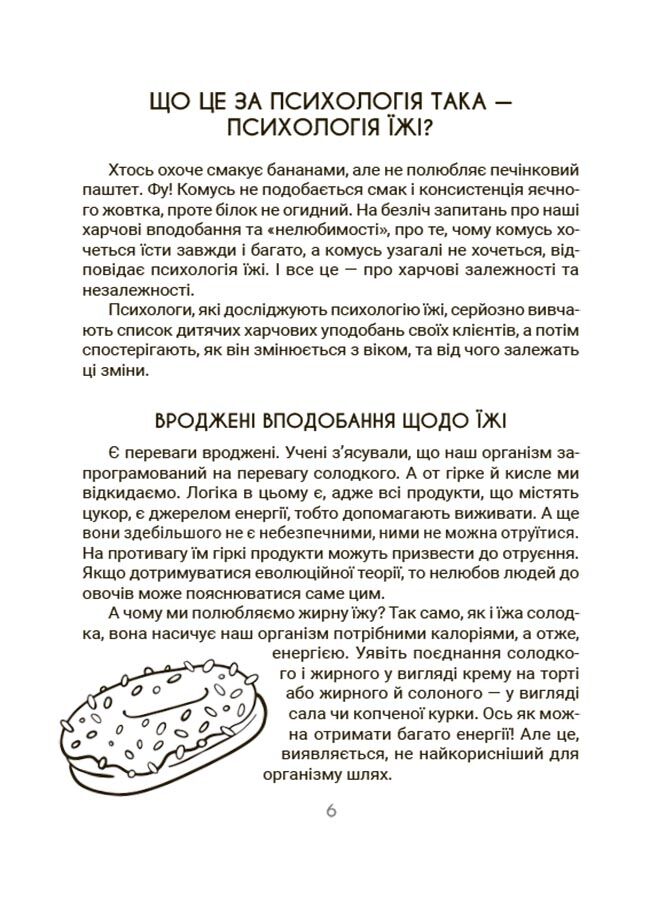 Ця книжка - не збірка кулінарних рецептів, хоча цікаві рецепти в ній таки є. Це книга про психологію їжі. Про правильне формування харчових звичок у малюка та всіх членів сім'ї. Усередині ви знайдете прості алгоритми щодо того: