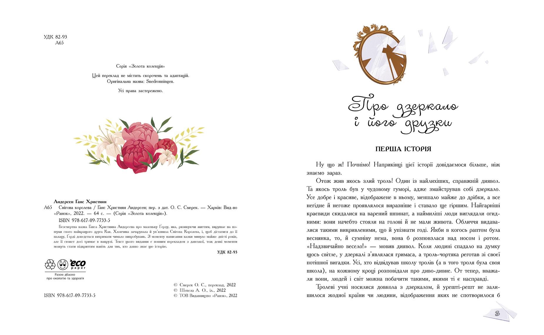 Безсмертна казка Ганса Християна Андерсена про маленьку Ґерду, яка, ризикуючи життям, вирушає на по- шуки свого найкращого друга Кая. Хлопчика зачарувала й ув’язнила Снігова Королева, і, щоб дістатися до її палацу, Ґерді доведеться витримати чимало випробувань. З моменту написання казки минуло майже двісті років, але її сюжет досі тримає в напрузі. Текст цього видання є повним перекладом з данської, тож деякі моменти можуть стати відкриттям навіть для тих, хто давно знає цю історію.
