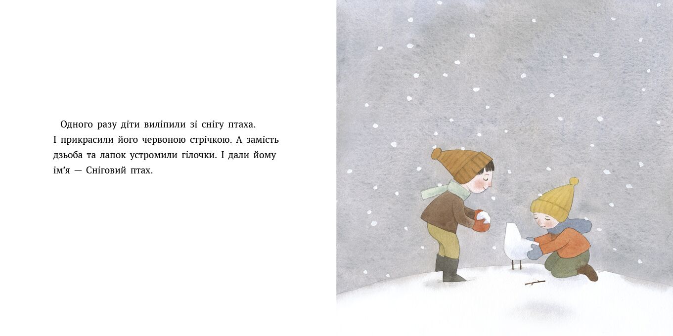 Це казка про маленьку пташку, яка, побачивши Снігового птаха, вирішила, що він обов’язково повинен літати. Щодня пташка прилітала до Снігового птаха й розповідала йому історії про політ. І віра маленької пташки була така сильна, що одного разу Сніговий птах розправив крила і… полетів! Адже якщо вірити в дива, вони обов’язково трапляться! Видання надруковано за кошти гранту інституційної підтримки.