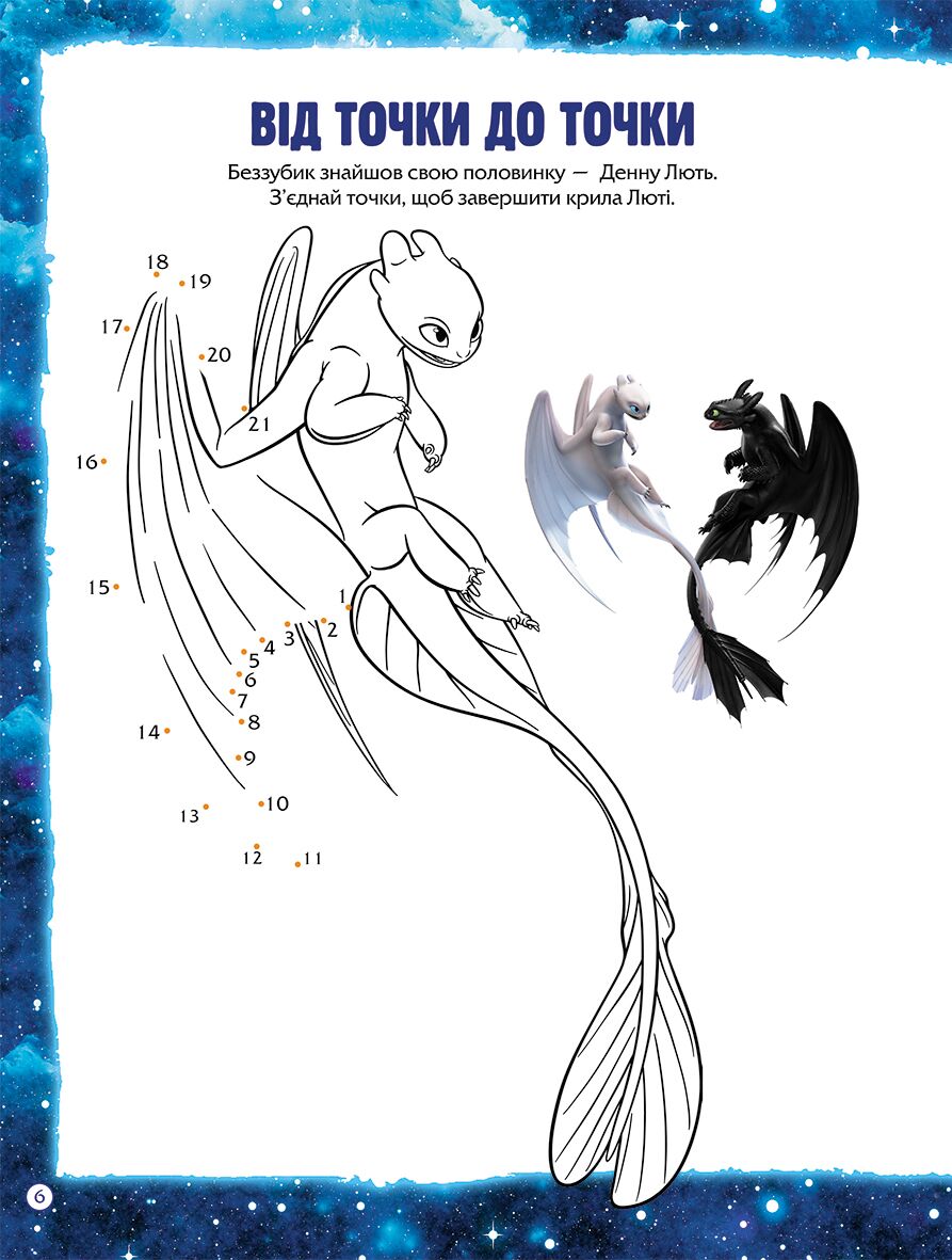 Розмальовка Як приборкати дракона 3 Сяйво у темряві Лабіринти Філворди DreamWorks Ранок. Приєднуйся разом з Гикавкою, Беззубиком та вікінгами Берка до захопливих ігор, завдань та розмальовок. А ще безліч наліпок, що світяться у темряві, перенесуть тебе до Прихованого Світу.