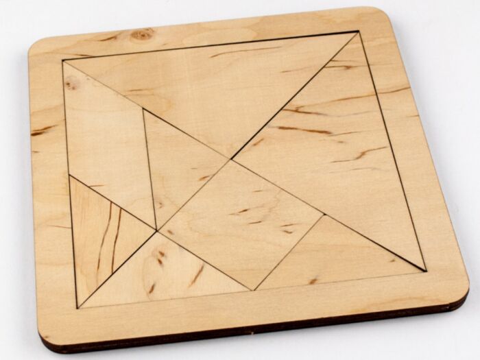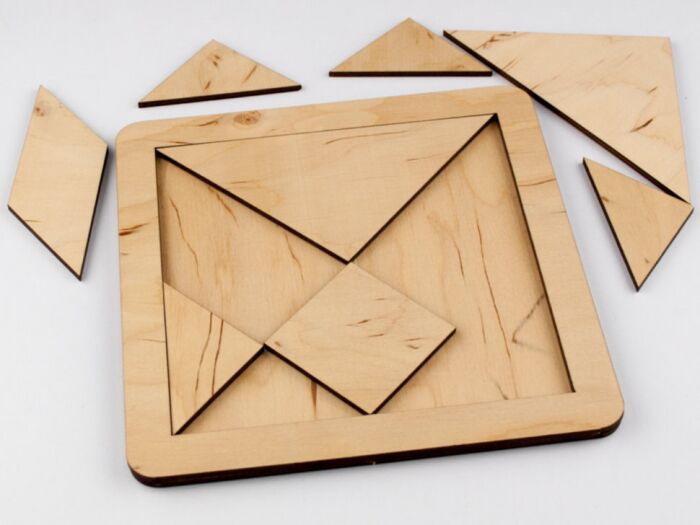 Головоломка являє собою квадрат поділений на 8 частин: 2 великих трикутника, 4 маленьких трикутника, квадрат і паралелограм. Розмір: 16*16см.