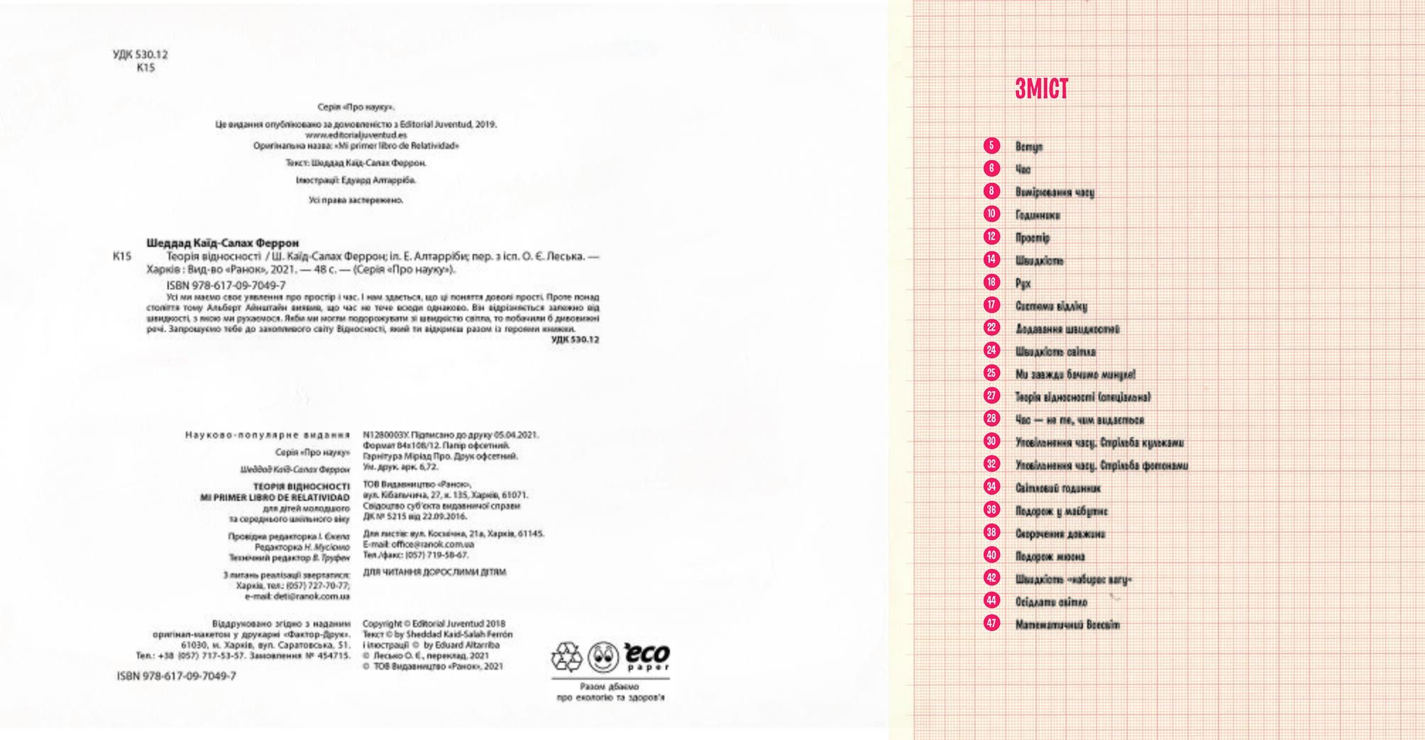 У книжці «Теорія відносності» Альберт Айнштайн і його помічниця Аліса пояснюють дітям дивні речі, що кояться у Всесвіті. Нелегко збагнути, що час, простір і навіть маса не є чимось сталим – вони залежать від спостерігача й систем відліку! Але тут про все це розповідають дуже просто. Завдяки зрозумілим прикладам і наочним ілюстраціям дослідів збагнути світ відносності зможуть навіть молодші школярі. До серії «Про науку» також входять книжки «Квантова фізика» та «Архітектура».
