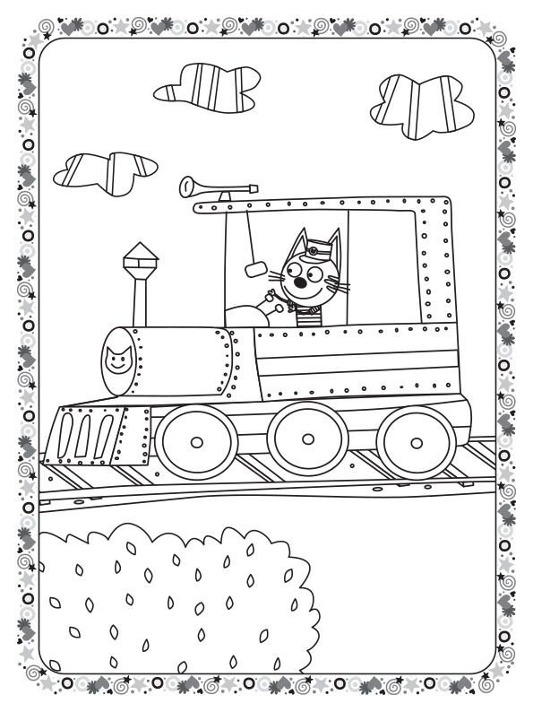 Кольоровий штрих Три коти Залізниця Kids-E-Cat Ранок. Розважайся разом із кошенятами! Розфарбовуй веселі малюнки та оживи їхні пригоди! 16 безбарвних сторінок чекають яскравої допомоги!