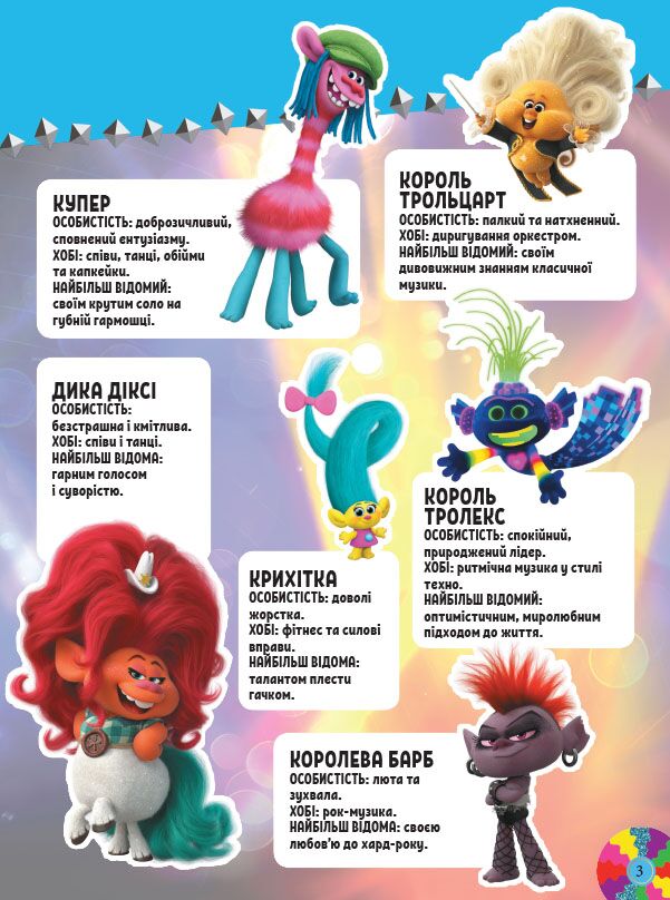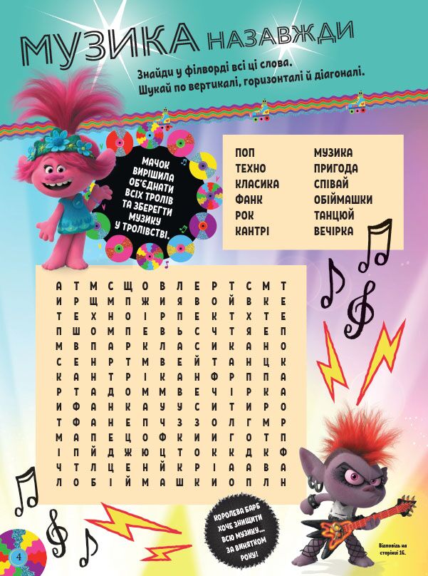 Тролі 2 Світове турне DreamWorks Ранок. Приєднуйся до Мачок, Пагона та їхніх нових друзів у цій надзвичайній пригодницькій історії з наліпками. На тебе чекають загадки, судоку, розмальовки та ігри.