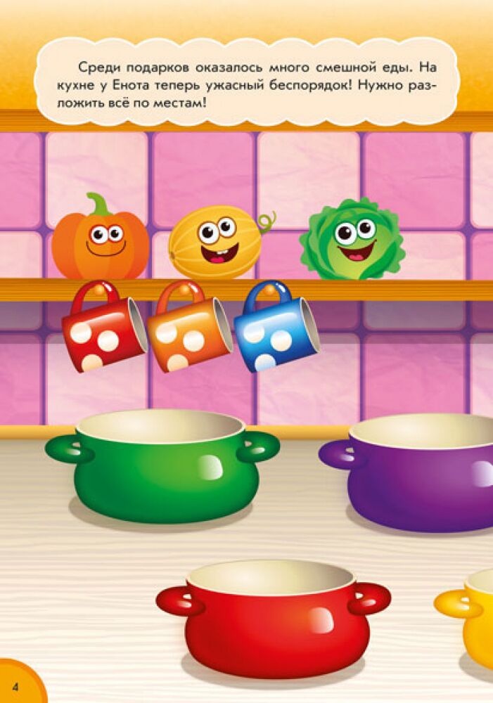 .Игры со смешной едой радуют миллионы детей во всём мире в виде приложения, а теперь вышли и в бумажном варианте! В этой книжечке ребёнка ждут самые разные развивающие логические задания и история о Щенке, который пригласил друзей на дачу. Забавные глазастые тыковки, морковки, зефирки и многие другие смешные персонажи порадуют вашего ребёнка и дадут чудесную возможность изучить самые разные продукты. Клей наклейки, рисуй фломастером — выполняй задания, Щенок ждёт тебя!