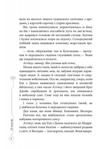 Коли семеро членів його родини були викрадені Весперами, тринадцятирічний Ден Кехіл знав, що битиметься за їхні життя. Також він знав, що йому протистоятиме надзвичайно сильний ворог. І ще Ден знав, що дехто із членів його родини не врятується. Але навіть якщо Ден змушений був сприйняти ці факти, сталося те, з чим він змиритися ніяк не міг. Веспери викрали Аттікуса, кращого Денового друга. І тепер Ден має врятувати Аттікуса, який перебуває на межі між життям і смертю.