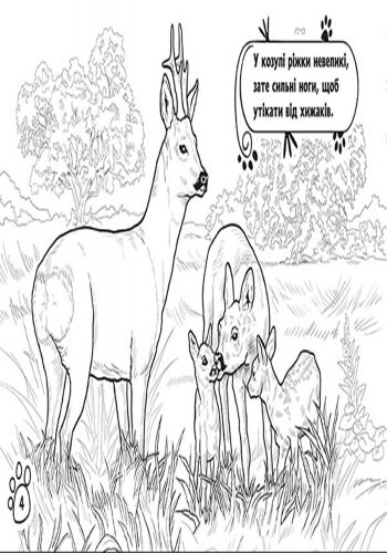 У лісі Розмальовка Авт. гр. МАГ Ранок. Тварини в цій розмальовці зображені в натуралістичному стилі й виглядають як живі! Бобри будують хатинку в річці, шелестить листя під лапами в їжачка, а олень дослухається – чи нічого не загрожує його малюкам. Бери мерщій олівці та розмальовуй тваринок!
