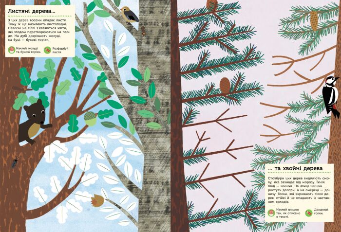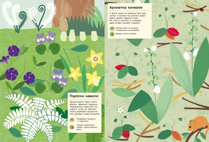 Книга про природу з наліпками та завданнями. Малюк наклеюватиме наліпки й дізнаватиметься цікаві факти про тварин та рослини навколо.
