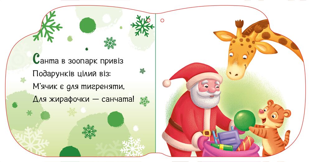 Перед вами чарівна книжка-іграшка, яка створює святковий настрій! Вона складається з двох маленьких книжечок, що скріплені одна з одною мотузочкою. До кожної книжки увійшли вірші, які будуть зрозумілими для найменших діток і зможуть їх потішити. Після прочитання ви зможете прикрасити книжечкою ялинку, адже вона виглядає як новорічна прикраса, або повісити книжку на візочок, щоб дитина могла погратися.