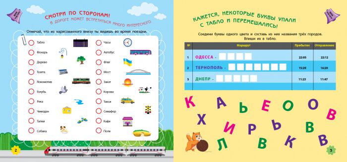 Книжки цієї серії стануть гарним другом дошкільнику під час подорожі. Завдяки книжкам дитина не нудьгуватиме у дорозі, адже буде виконувати завдання, пов’язані з поїздкою. Вони складені таким чином, що дитина зможе легко розвинути спостережливість, логіку, навички лічби та підготуватися до школи.