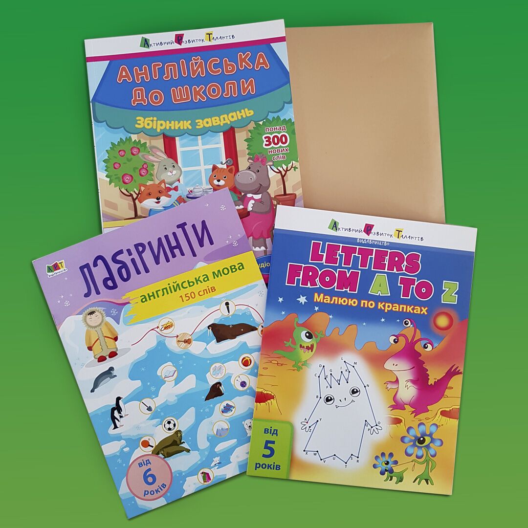 Англійська з комплектом «Вивчаємо англійську» - це легко та цікаво. Ігрові елементи, аудіосупровід, практика. «Англійська до школи. Збірник завдань» на кожній сторінці має нову лексику, ігрові вправи та аудіосупровід, який навчить сприймати на слух іншомовні слова та тексти. «Навчальні лабіринти. Англійська мова» спеціально для тих, хто креативно підходить до навчання. Тренуйтеся в англійській лексиці, вивчайте 150 нових слів та одночасно проходьте лабіринти.