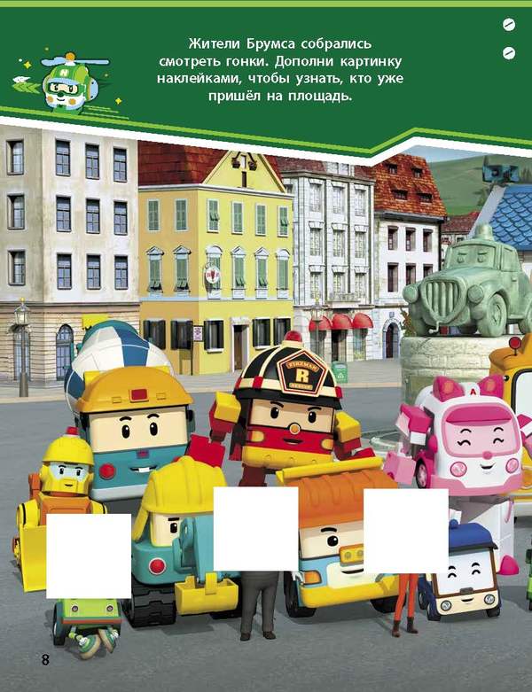 Зустрічайте серію книг з наліпками 'Robocar Poli'! Тут машинки-рятувальники готуються до свята, збирають футбольну команду і доставляють листи. Ти можеш їм допомогти. Для цього читай завдання, підбирай потрібні наліпки і оживляй сторінки з героями містечка Брумс!