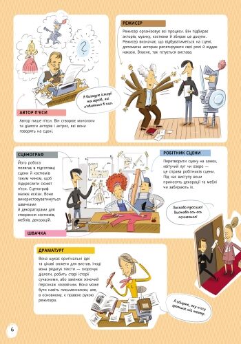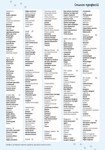Що робить хірург? Хто може стати капітаном корабля? Яку професію обрати? Книга допоможе допитливим дітям знайти відповіді на ці запитання. У книзі ти знайдеш понад 300 професій, які розділені на 17 глав. У кожній описані різні сфери професій. Ілюстрації віммельбуха на двох кольорових сторінках показують, наприклад, хто працює в аеропорту, на фермі, у театрі. На інших сторінках з яскравими ілюстраціями йдеться про окремі професії.