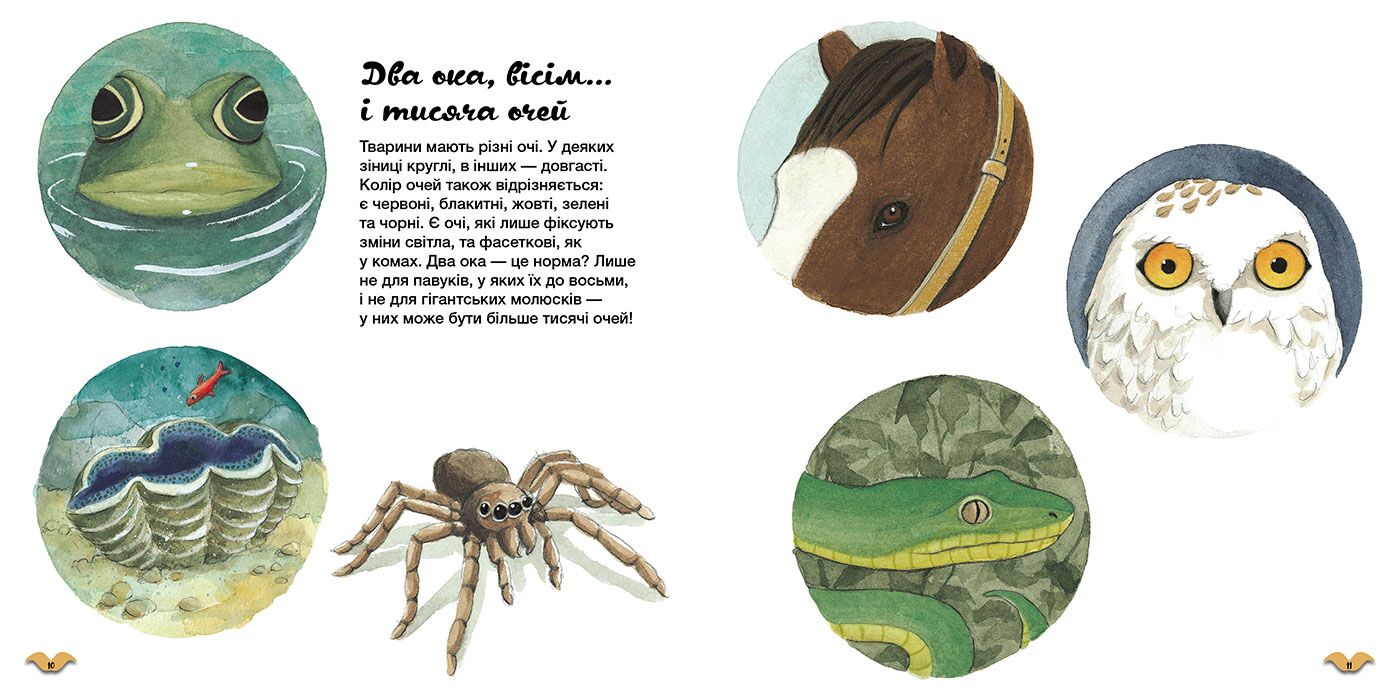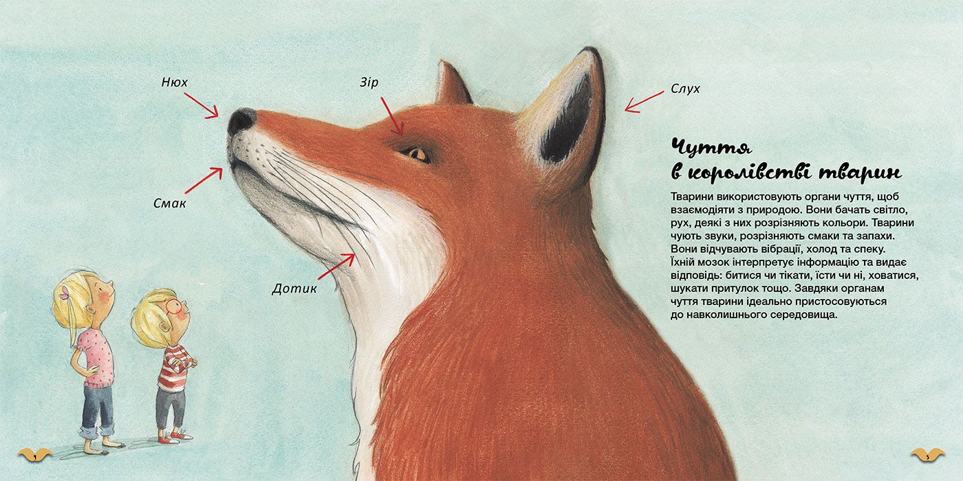 Як тварини бачать, чують, відчувають запахи, смаки та дотики? Чи такі самі в них органи чуття, як у нас, або особливі? У тварин п’ять органів чуття чи більше? Ірена і Бруно дуже допитливі і хочуть дізнатися все про органи чуття у тварин. Приєднуйся до їхньої мандрівки і разом з ними знайди відповіді на багато запитань. Ця книжка містить цікаві факти!
