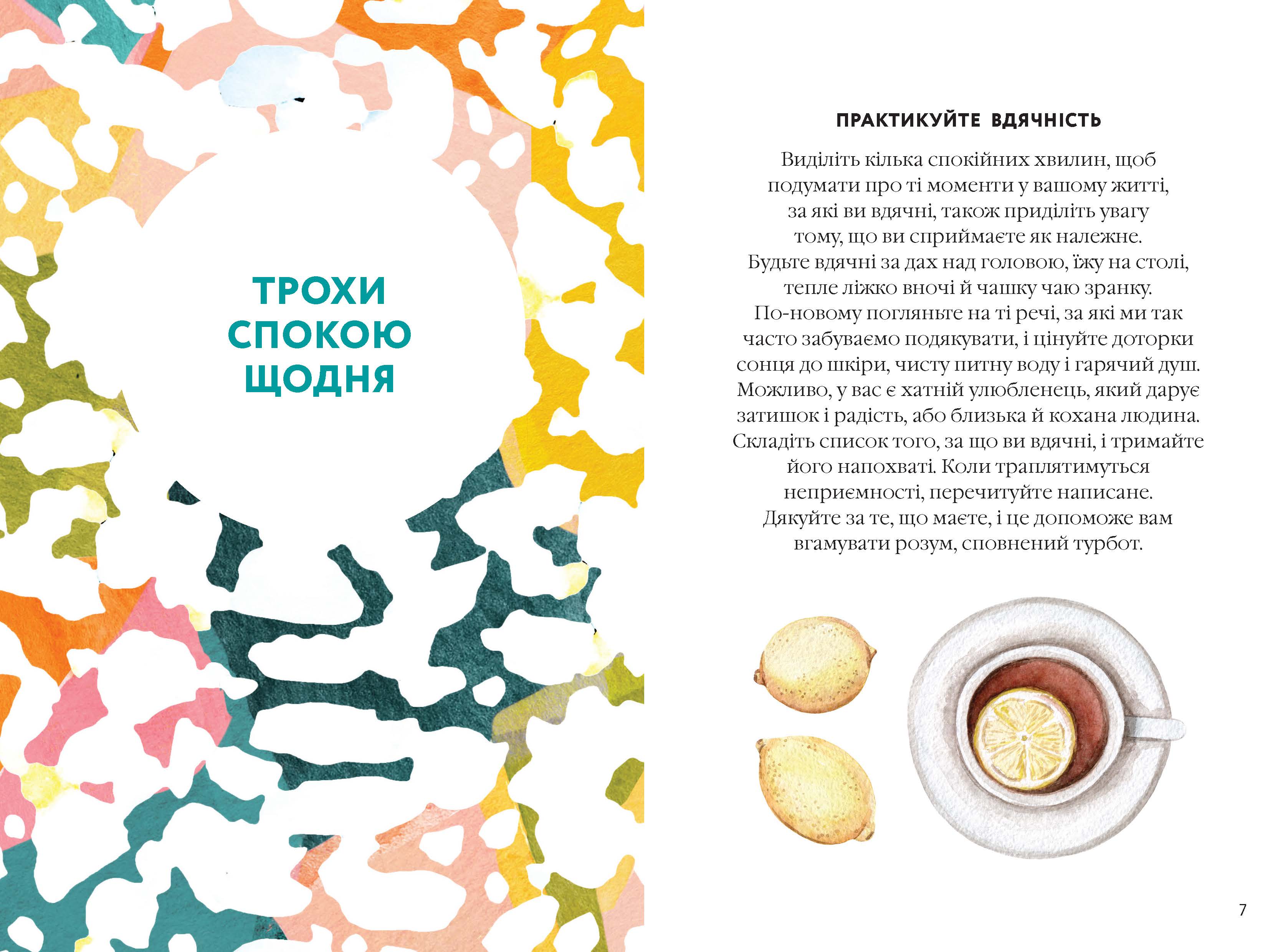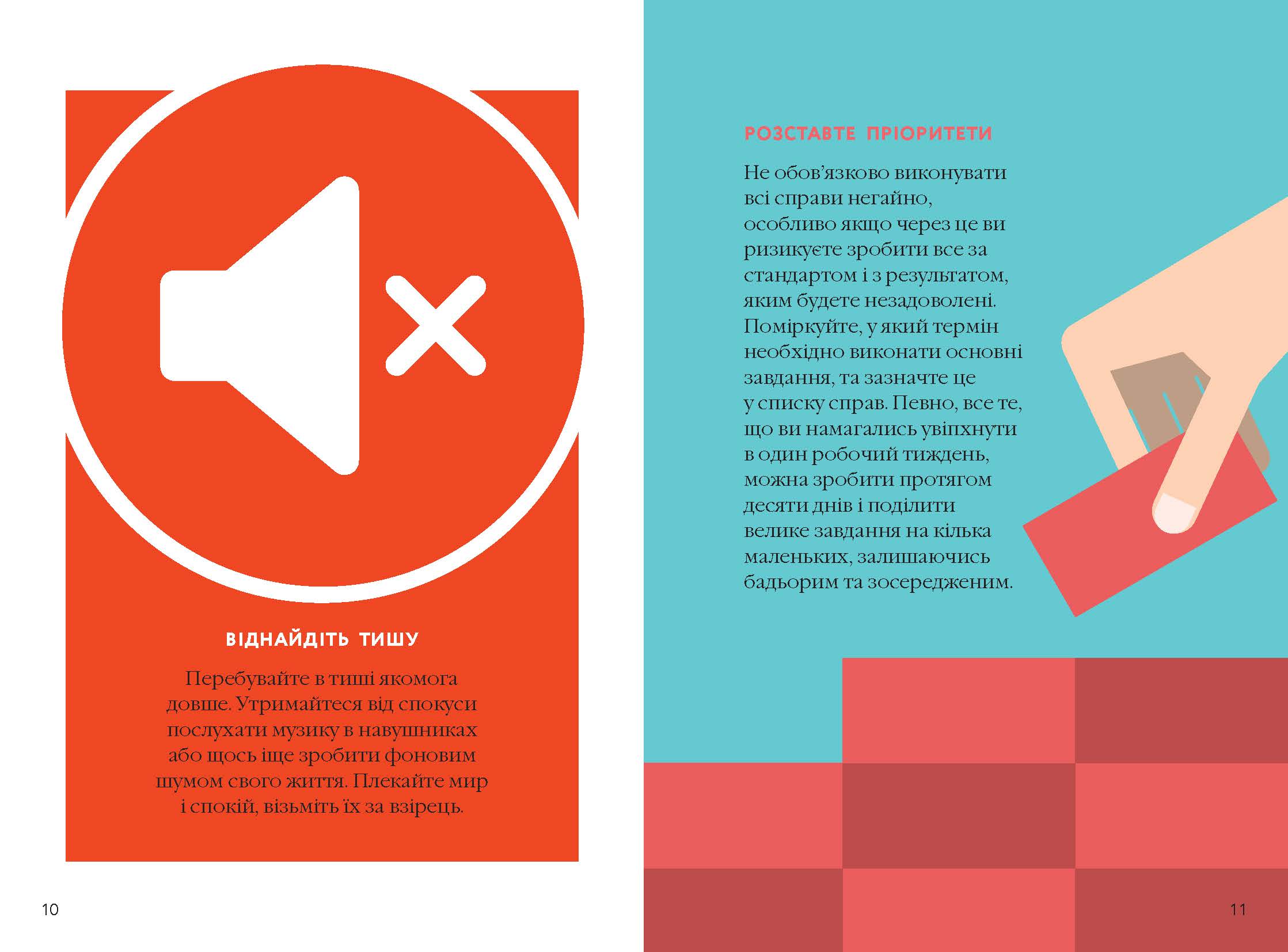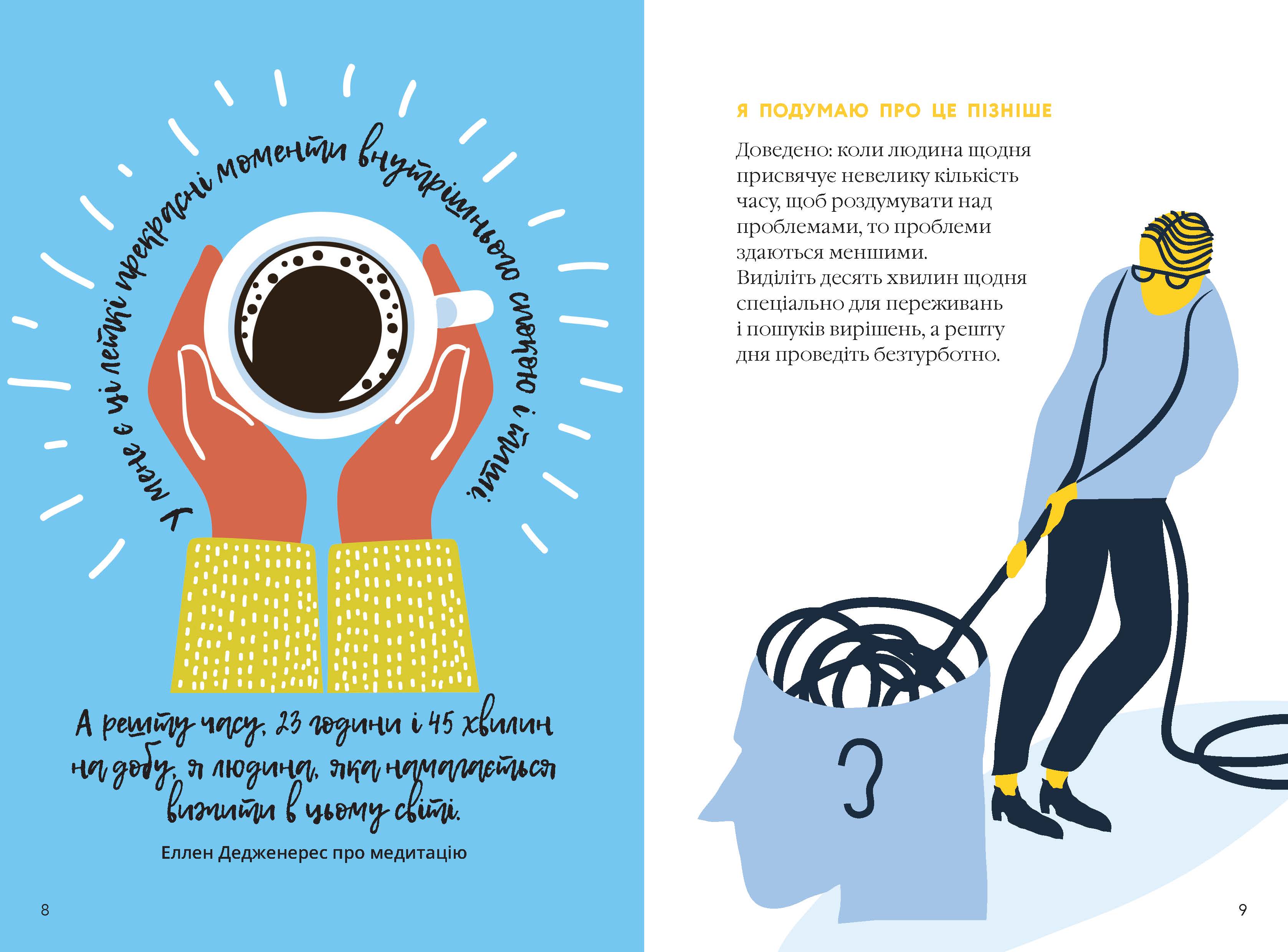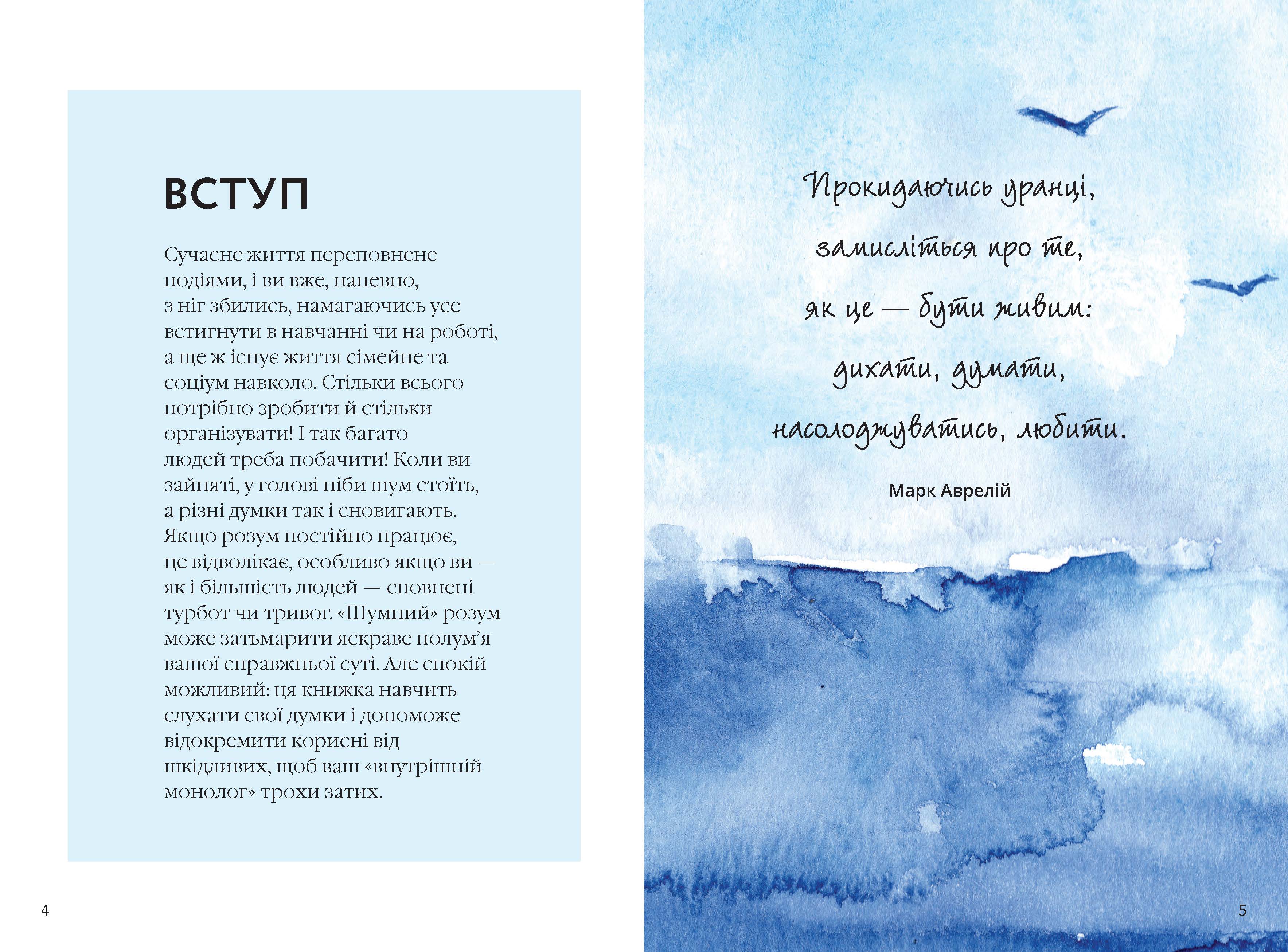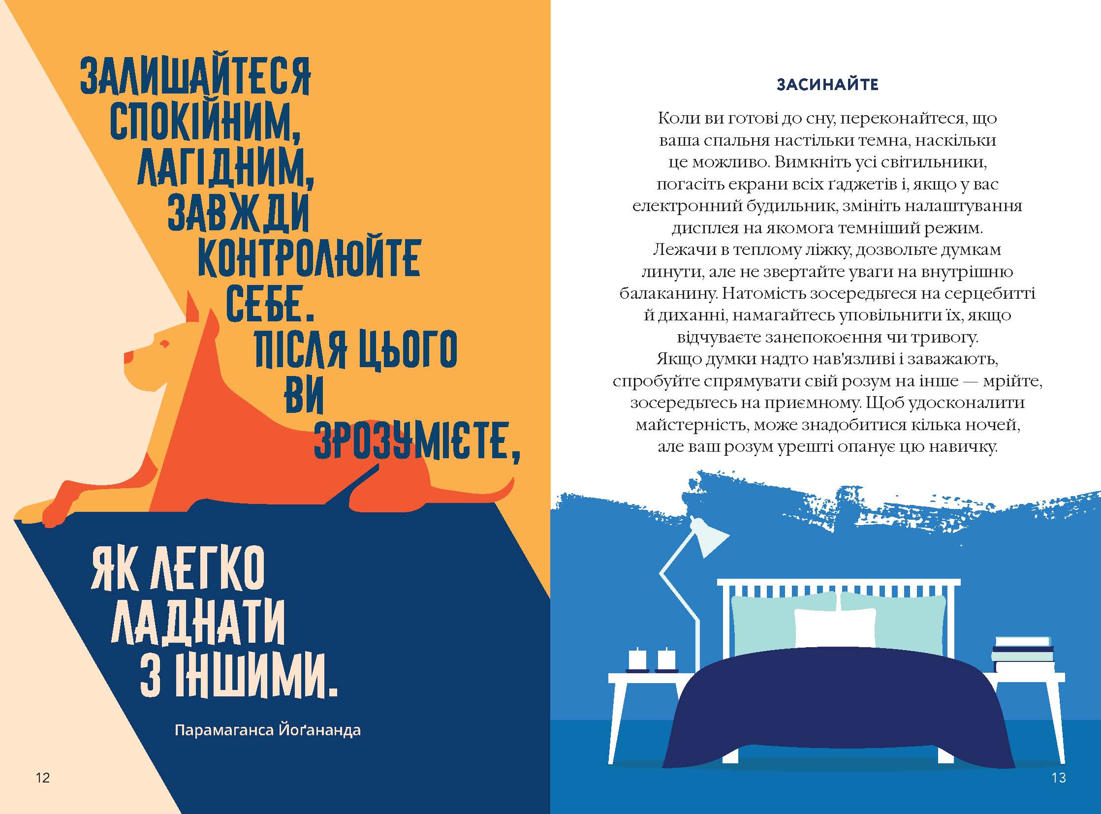 Наш мозок — унікальна річ, він продовжує активно працювати, навіть коли тіло відпочиває. А як часто нам не дають спокою думки про роботу чи дім? Постійно напружений розум виснажує, ми дратуємось через дрібниці і швидше втомлюємось. Анна Барнс знає, як зарадити цьому. У цій книжці з яскравими ілюстраціями зібрані дієві поради та корисні вправи, які допоможуть вгамувати розум та уповільнити нескінченний потік думок.