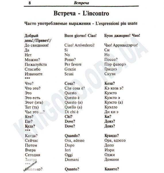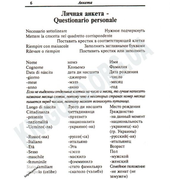 Книга предназначена прежде всего для русскоязычных граждан, которые выезжают за границу, а также для школьников, студентов и всех, кто изучает итальянский язык.