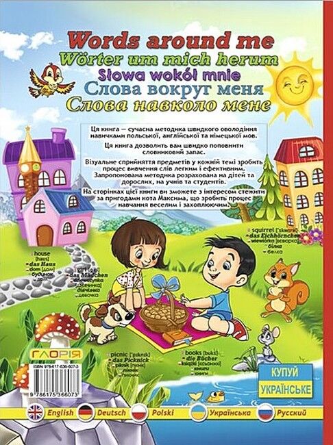 Ця книга – сучасна методика швидкого оволодіння навичками польської, англійської та німецької мов. Ця книга дозволить вам швидко поповнити словниковий запас. Візуальне сприйняття предметів у кожній темі зробить процес вивчення слів легким і ефективним.