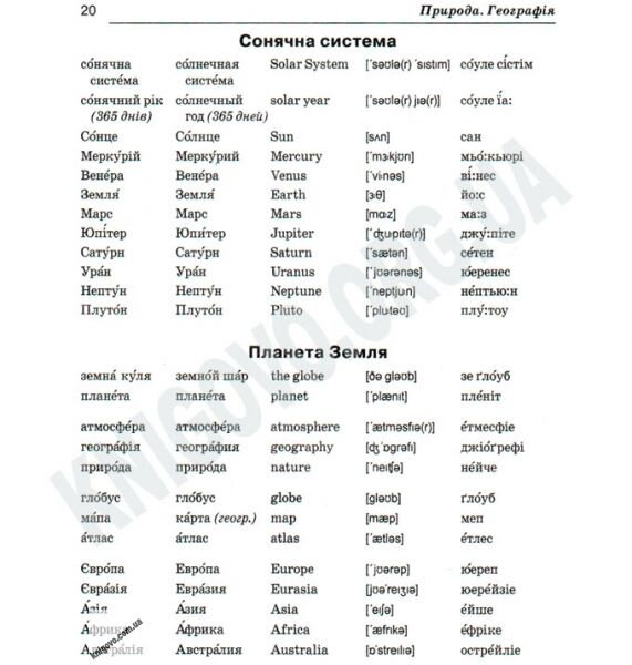 Тематичний словник Українсько-Російсько-Англійський з Транслітерацією 10 000 слів Авт: Рудь С. Вид-во: Весна