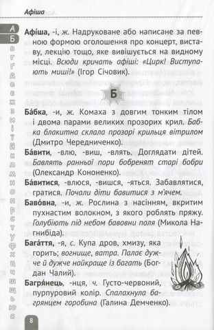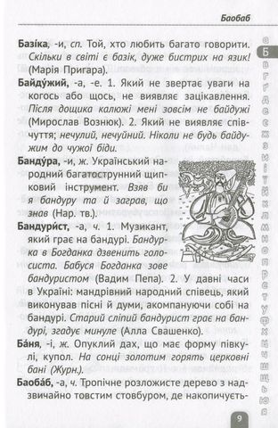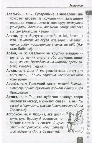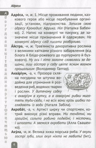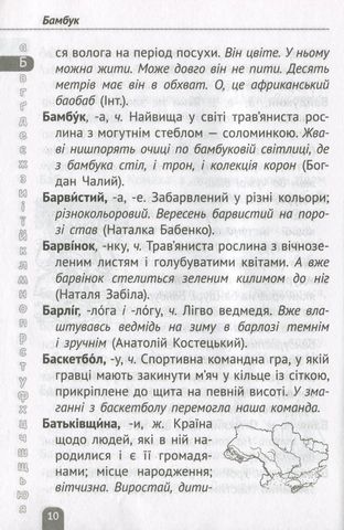 Словник містить тлумачення найбільш уживанних слів і мовних зворотів. З його допомогою молодші школярі з`ясують значення незрозумілих слів, які трапляться в побутовому спілкуванні.