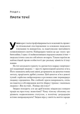 \nАвтор переосмислює античний стоїцизм, кінізм та інші вчення, що стають дедалі кориснішими для сучасної людини, формують нинішніх воїнів. Через призму власного досвіду він розглядає, як досягнення стану автаркії допомагає не втрачати себе у вирі подій і зберігати твердість духу, коли все навколо змінюється.