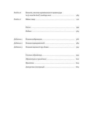 Як пояснити пасивну агресію «підрізаного» водія? Чому в підлітковому віці дітям «зносить дах» і вони втікають із дому чи ув’язуються в сумнівні компанії? Чому нас нудить не тільки від зіпсованої їжі, а й від подій? Як вияв люті однієї людини зміг перерости у 20-мільйонний протест — Арабську весну? Це й інше в людській поведінці різнобічно пояснює Сапольскі.